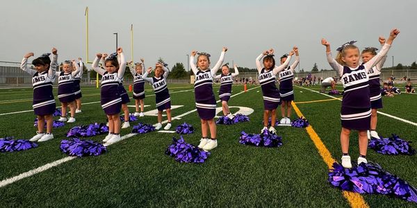 Flag Cheer is offered to students entering Kindergarten & 1st grade. It is a very entry level program designed to have fun and get kiddos excited about cheerleading. Nothing is sweeter than seeing your little one with poms and a bow learning new cheers! Practices are much shorter and no more than 2x/week. Flag Cheerleaders participate in flag football games with flag footballers their same age, usually the games are about 30 minutes.